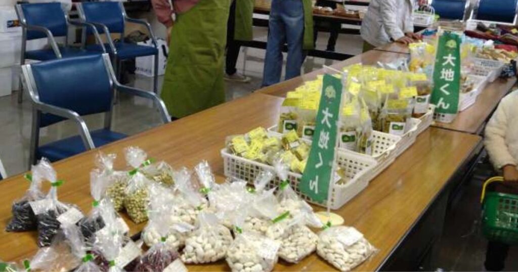 その向こうには漬物や手編みの靴下など手作り品、焼き菓子などが並んでいました。