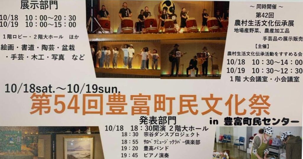 18日は朝(伝承の会)、昼(展示)、夜(発表)と3回、町民センターに行ってきました。