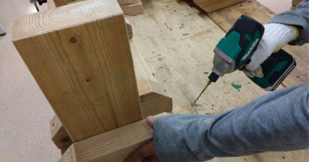 厚みのある板なので、ネジもかなり長くなり、電動ドライバーを使うのもドキドキ。