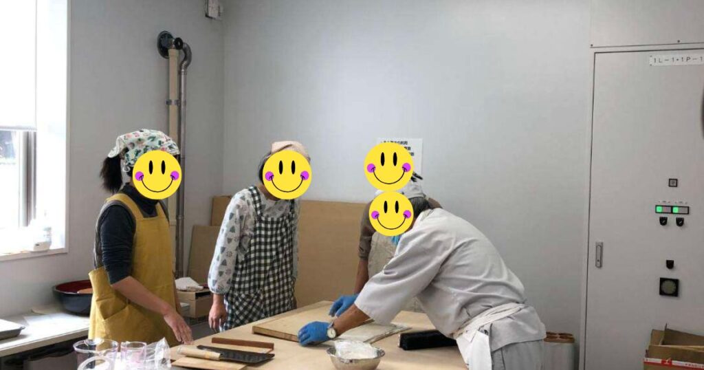 2人の師匠にそれぞれ3人ずつグループ分けされて、Let’sそば打ち!