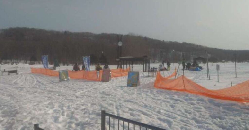 雪上ティラノレース&雪上綱引き会場は、予定より幅を小さく